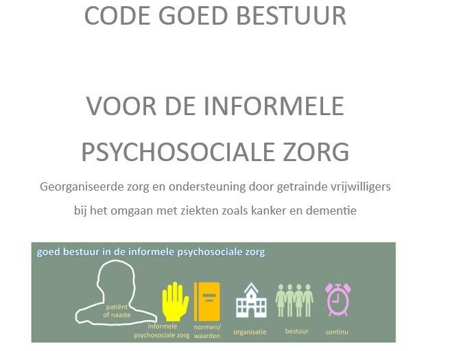 Het is belangrijk om in de samenwerking met het medisch en sociaal domein te kunnen aantonen dat informele zorg en ondersteuning op betrouwbare wijze een goede aanvulling kan zijn. Deze zorg helpt mensen om te gaan met de gevolgen van hun ziekte voor het dagelijks leven. Daarom hebben het Landelijk Platform Odensehuizen (LPO) voor mensen met beginnende dementie en hun naasten en brancheorganisatie IPSO van de Centra voor leven met en na kanker gezamenlijk een Code Goed Bestuur vastgesteld voor informele psychosociale zorg en ondersteuning door getrainde vrijwilligers.